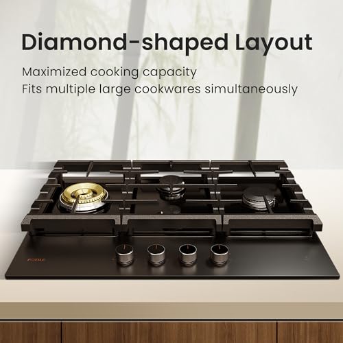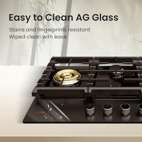 FOTILE GLG30401-Y 30” Moonshadow Tempered Glass 4 Gas Cooktop, Tri-Ring 18,000 BTUs Center Burner with Flame Failure Protection Removable Grates and Installation/LP Kit