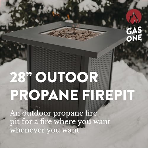 Everything You Need: The GasOne gas fire pits for outside patio come with everything you need for a hassle-free and swift setup. The package includes the fire pit itself, a convenient lid for full table usage when the fire is not in use, and a bag of lava rocks for a captivating flame display. We have also added a practical propane hose assembly for easy connection.