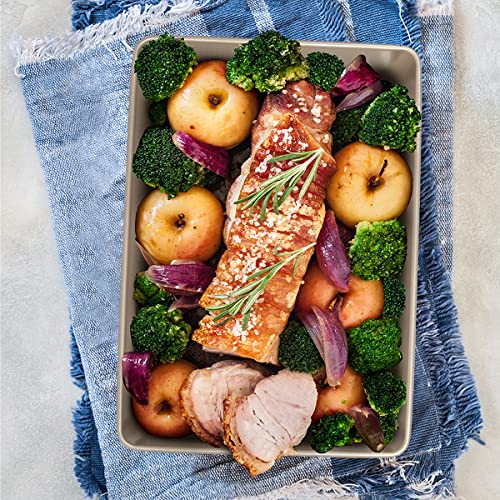 HEAVY DUTY METAL PAN – Premium baking pan is made with a heavy gauge metal construction for lasting durability and high heat resistance up to 460ºF.