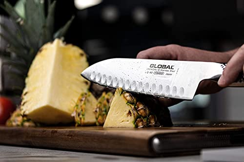 The Global 7″ Hollow Ground Santoku Knife is a great alternative to the chef’s knife. Great for cutting, chopping and mincing vegetables. The scalloped blade has a straighter edge than a chef’s knife and has a blunted sheepsfoot-tip blade with a thinner spine. It can easily slice thin-boned and boneless meats, fish and vegetables.