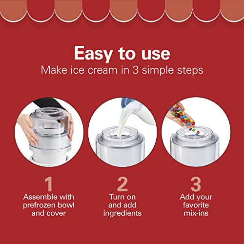 EASY TO USE: It’s easy to make homemade ice cream in 3 simple steps. 1) Place the prefrozen bowl onto the base and add paddle and cover; 2) turn on and add ingredients, and 3) add your favorite mix-ins. Perfect for parties, gatherings and family fun.