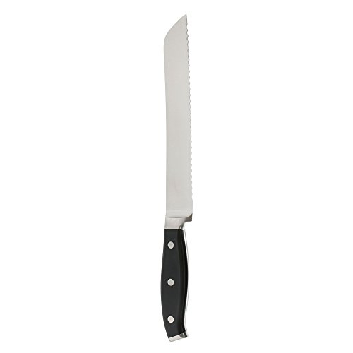 The Henckels Forged Premio 8″ Bread Knife allows you to cut with confidence. Fabricated from high-quality German stainless steel, the strong, serrated blade effortlessly cuts through hard bread crusts. Enjoy neat slices of sourdough and cubes of Ciabatta thanks to the blade’s aggressively long prongs.The forged bolster construction seamlessly transitions from blade to handle for durability and balance. Curved for comfort, the triple-rivet handle features a stylish, stainless steel endcap that adds aesthetic appeal to your knife block. Stamped with the single man Henckels’ logo, this Halberdier symbolizes Forged Premio’s superb quality at a remarkable value.Henckels makes essential kitchen tools every home chef needs. From steak knives to spatulas, every product boasts high quality at an exceptional value. Created in 1895 by Zwilling J.A. Henckels, this value-driven brand guarantees the same durability, design and ease of use for which the global company is known. Equip your kitchen with expertise with Henckels.