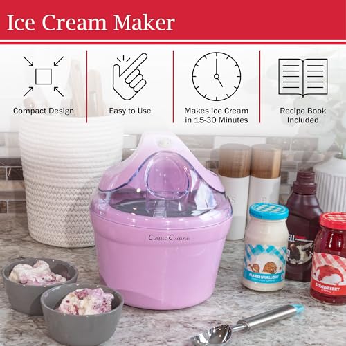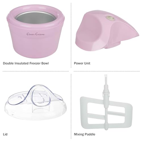 Make delicious ice cream, sorbet, gelato, frozen yogurt, and more in under 30 minutes with the Icecream Maker Maker by Classic Cuisine. This electric ice cream maker is easy to use — simply place the inner ice cream bowl in the freezer, prepare the ingredients/mix and allow to cool in the fridge, turn the machine on, pour the ingredients into the bowl with the paddle running, and enjoy tasty frozen desserts. The mini ice cream maker is only 8-inches-long for a compact size that fits perfectly on any countertop and stores easily in any cupboard when not in use. The gelato machine makes a great Christmas, wedding, housewarming, or back-to-school present for people of all ages. Important: Classic Cuisine is committed to providing the consumer with the absolute best price and value on our entire line of products. Note: This is an exclusive product of Classic Cuisine and only Ice Cream Machines by Classic Cuisine are guaranteed to be genuine. Avoid buying counterfeit products and transacting with unauthorized sellers.