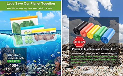 IDEATECH Reusable Food Storage Bags Washable, 20Pack Reusable Freezer Bags, BPA Free Reusable Ziplock Various Size, Plastic Free Bags for Veggie Salad Travel Kitchen (8 Gallon 6 Sandwich 6 Snack Bags)