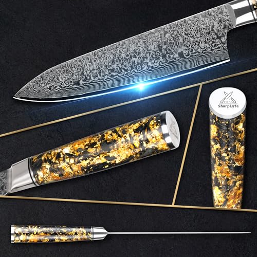 Ergonomic & Luxurious Handle: The handle of the SharpLyfe shun knife is designed with a combination of gold foil and carbon fiber, resulting in a visually striking and luxurious appearance. The handle offers a comfortable and ergonomic grip, reducing fatigue during prolonged use in the kitchen.