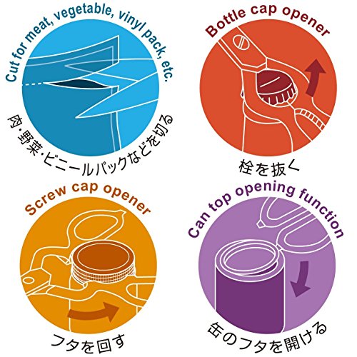 They can be widely used from housewives to professional chefs. Rust resistant and washable. Sanitary design of metal only material allows boiling sterilization. Not only be ideal for meat and vegetable cutting, but also have a convenient multifunction of bottle opener, screw driver, and can-opener. Detachable type fits for good cleaning.