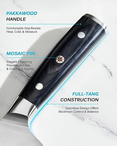 Razor Sharp Blade: This carbon steel knife’s ultra-sharp blade is precisely honed to 13-15 degrees, making it perfect for mincing garlic & herbs, slicing and dicing apples, and chopping bell peppers with minimal resistance.