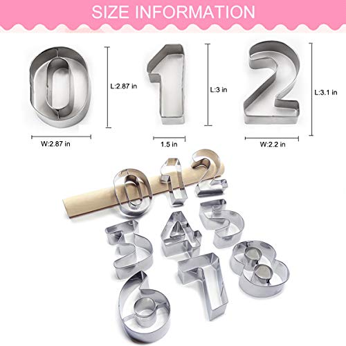 3” Numbers Cookie Cutter Set: Cutters are shaped as numbers 0 through 8 (6&9 use one cutter) creative number shapes can develop your baby’s intelligence in learning and spelling the numbers, and make cookies or snacks for any number birthday or anniversary.