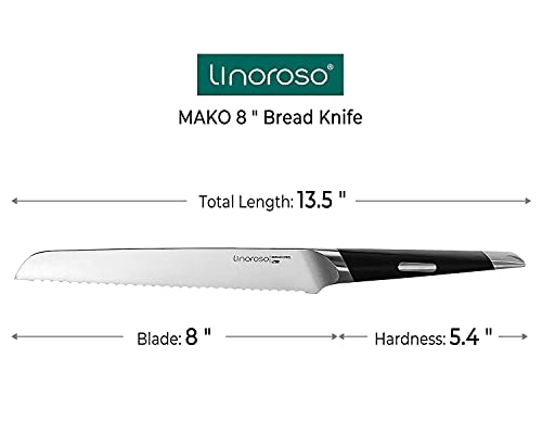 linoroso Serrated Bread Knife for Homemade Bread,Ultra Sharp Forged German High Carbon Stainless Steel Blade(8 inch),Full Tang,Ergonomic Handle- MAKO Series