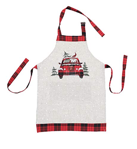 Santa Claus Riding On Car Kids Apron, 22"x16", Natural/Red