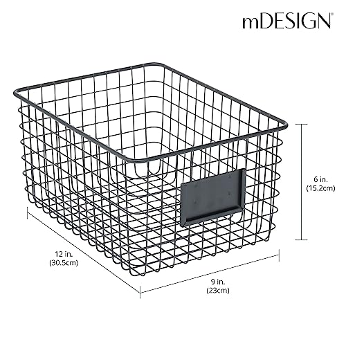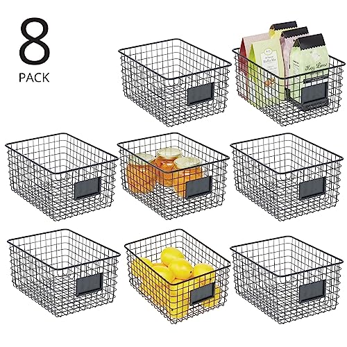 mDesign Large Steel Storage Organizer Bin Baskets with Label Slot for Kitchen Pantry, Cabinet, Cupboard, Organizing Holder for Food, Drinks, Snacks, Produce, Omaha Collection, 8 Pack, Matte Black