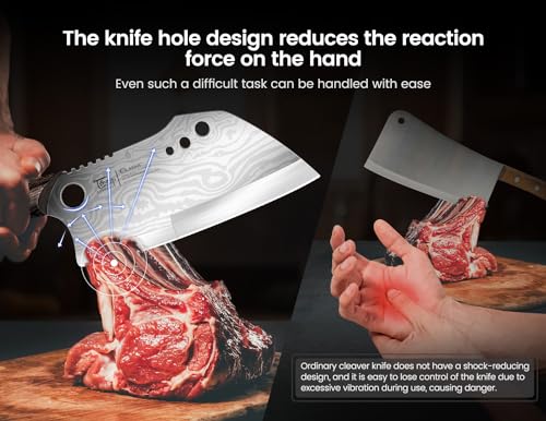 For non-slip consideration, we have added a contemporary gear teeth element to this cleaver chef knife. Combined with the overall classic shape, it is both beautiful and practical – ensuring a stable grip even when wet and ensuring your safety while handling your food.