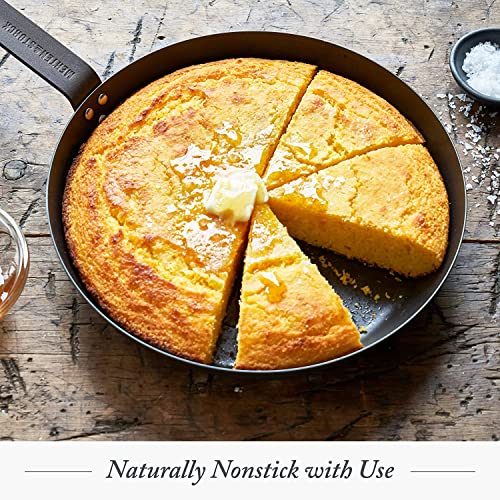 Merten & Storck has engineered cookware with exacting precision since 1873. The Carbon collection is made of black carbon steel, a versatile, dynamic material that heats ultra-fast, is half the weight of cast iron, and is just as durable. Pre-seasoned to get you started right away, Carbon develops a naturally nonstick patina layer over time that makes it ideal for frying fish, crafting omelets, and getting a perfect sear without a messy cleanup. The lightweight design makes it perfect for camping and outdoor cooking. Carbon performs on all heat surfaces and can stand up to open flame and grill cooking. Hand wash only.