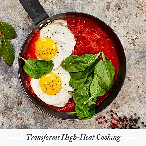 Lightweight and quick heating carbon steel delivers cast iron performance without the weight or the wait