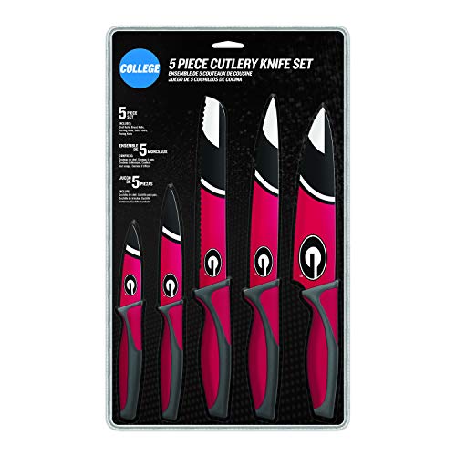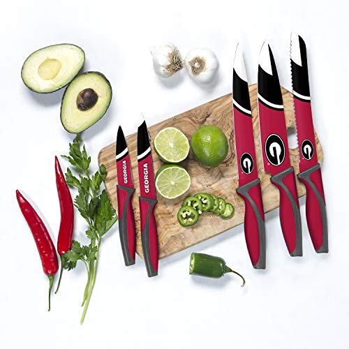 From carving a delcious Sunday roast to chopping up vegetables, this 5-Piece Kitchen Knife Set from The Sports Vault is great to have on hand in your kitchen for every day food prep. Each set includes a chef knife, bread knife, carving knife, utility knife and paring knife and all made from high quality 430 stainless steel. Features team printed artwork which makes them great for homegating and tailgating on game day. Great for mincing, slicing, and dicing fruit, meat, fish and vegetables with the ergomoinc non-slip handle that allows for better control and comfort when using. Perfect gift for the loyal sports fan, or the aspiring chef in your family.
