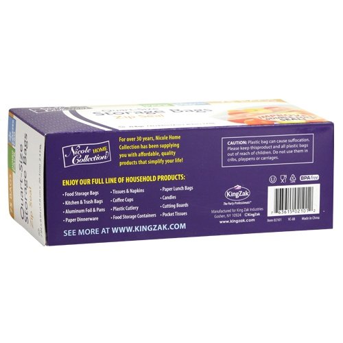 Nicole Home Collection Zip Seal Quart Size Storage Bags, 75 Count. Designed for all occasions, banquets, dinners, parties, upscale catering, and home. Disposable Products.Nicole Home Collection 지퍼 씰 쿼트 사이즈 보관 가방, 75개. 모든 행사, 연회, 저녁 식사, 파티, 고급 케이터링 및 가정용으로 디자인되었습니다. 일회용 제품.