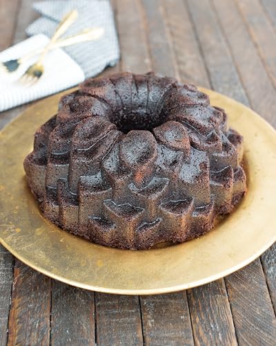 Nordic Ware genuine Bundt® pans are made of durable cast aluminum to achieve the most crisp, intricate cake detail possible. Cast aluminum’s superior heat conductivity ensures controlled, even browning of cakes and treats. Premium silicone nonstick is made without PFAS and PTFE for healthy baking and ensures effortless release and cleanup. Oven safe to 400 degrees Fahrenheit.This pan brings lovely organic shapes from the garden indoors to your table. The petals will capture a dusting of confectioners sugar or drizzled glaze for beautiful effect. Pan exterior is 10.3 inch diameter and is 3.8 inches in height. The pan capacity holds 10 cups. Mixes and recipes may vary. Fill the pan no more than 3/4 full to avoid overflow. Proudly American Made since 1946, our heirloom-quality pieces are made to withstand a lifetime of use in your home kitchen.