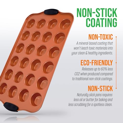 OPTIMIZED FOR CONVENIENCE: Enhance your baking needs with our Non-Stick Muffin Pan, featuring 1.8-inch cup size for perfect mini muffins. Wide handles with built-in silicone for easy grip, and raised edges to prevent spills. A must-have for seamless baking.