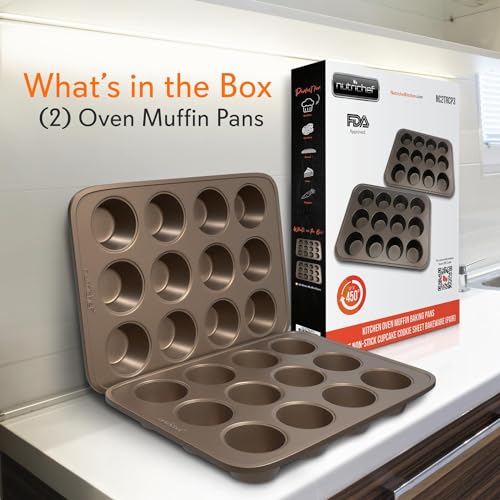 NutriChef Non-stick Carbon Steel Muffin Pans – Pair of Cupcake Cookie Sheet Pan Style for Baking, Professional Kitchen Muffin Bake Pans, 2 pc. Muffin Pans w/ 12 Cups Cupcake Baking Tray
