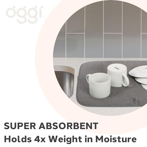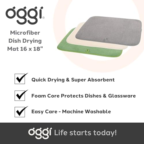 Introducing the ultimate kitchen accessory for busy homemakers: the Absorbent, Reversible Microfiber Dish Drying Mat! Oggi’s Dish Drying Pad is a game changer in the world of kitchen cleaning. Measuring a whopping 16 inches by 18 inches, it’s the X-Large size that can handle all your dishes and cutlery with ease. Say goodbye to traditional dish drying racks that take up precious counter space. Our Dish Drying Mat is made with high-quality microfiber material that not only absorbs moisture quickly but also dries fast. Its reversible design lets you use it twice before tossing it in the washer. The gray-colored mat fits perfectly with any kitchen dรฉcor and adds a touch of elegance to your kitchen countertop. This mat is not only functional but also beautiful. It’s machine washable, so you can keep it clean and hygienic without any hassle. Our Absorbent, Reversible Microfiber Dish Drying Mat is perfect for those with busy lifestyles, this mat is a must-have in your kitchen. It’s lightweight and easy to store, making it the perfect kitchen accessory for those with limited counter space. Oggi’s Dish Drying Mat is a versatile kitchen tool that can be used as a dish mat drying kitchen mat, drying mat for kitchen counter, dish dryer mat, and dish drying mat xl. Its soft and absorbent surface keeps your dishes from slipping and protects your countertops from scratches and water damage. Ditch your old, bulky dish drying rack and switch to our Dish Drying Pad for kitchen counter. It’s the perfect solution for those who want to keep their kitchen organized and clutter-free. You’ll love how easy it is to clean and how quickly it dries your dishes. Oggi’s Absorbent, Reversible Microfiber Dish Drying Mat is the ultimate kitchen accessory for busy homemakers. Its versatility, durability, and ease of use make it a must-have in any household. Get your Dish Drying Pad today and experience the convenience of a clutter-free kitchen!