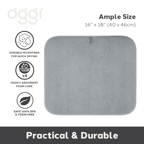 HANG TAG FOR EASY STORAGE: Oggi’s dish drying mats work fast and are extra durable. Fold up the dish dryer mats and place in a drawer or simply hang with the reinforced tag to dry.
