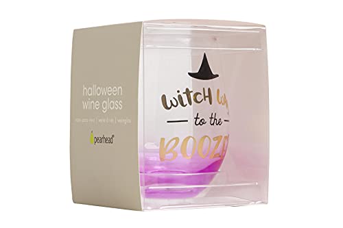 This whimsical “witch way to the booze” wine glass by Pearhead is the perfect way to celebrate Halloween and the fall season! This stemless, gradient purple wine glass features a “witch way to the booze” print under a black witch hat graphic. This autumn themed wine glass is the perfect novelty gift, party favor or birthday gift. Anyone who loves the fall season and fall holidays will love this fun wine glass. Leave this glass out in your kitchen or dining room to use as an adorable fall home décor accessory! This wine glass is handwash only and not microwave safe. At Pearhead, we aim to create genuine, quality products to celebrate your special moments in life. We are a family of designers, marketers, and trendsetters being products to life that will bring a smile to your face. From concept to design to production and customer service, the Pearhead team works together seamlessly every step pf the way. Whether you are looking for the perfect fall accessories, fall home décor, Halloween décor, Halloween gifts, Thanksgiving accessories or Thanksgiving décor to celebrate the holiday seasons, Pearhead is here to share your moments in style. Dimensions: 3.5”W x 2.7”H x 3.5”D; Holds 15oz.