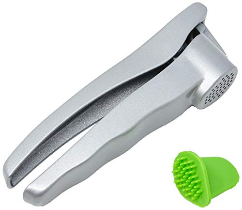 This sturdy, aluminum Garlic Press works great on both peeled and unpeeled garlic, so there is no need to peel garlic cloves