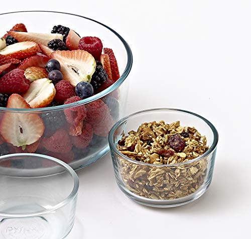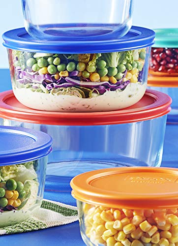 These versatile glass dishes have color-coded airtight lids for easy organizing in pantry, fridge or freezer. Durable, pure Pyrex glass stands up to the microwave and dishwasher use after use, and because it’s stain and odor resistant, it stays clean and preserves your food’s fresh flavors. Set includes (1) 7-Cup Round Glass Storage Container with Lid, (2) 4-Cup Round Glass Storage Containers with Lids, (2) 2-Cup Round Glass Storage Containers with Lids and (2) 1-Cup Round Glass Storage Containers with Lids.
