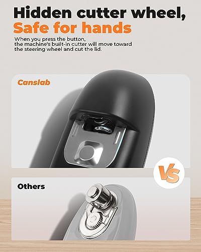 【Easy Operation with Reduced Noise & Faster Speed】The robust industrial leading motor enables the Canslab automatic can opener to open cans with 28% less noise and 28% more speed, compared with the old fashioned aa battery type can opener. Just press the easy-touch start/stop button for hands-free, painless use.
