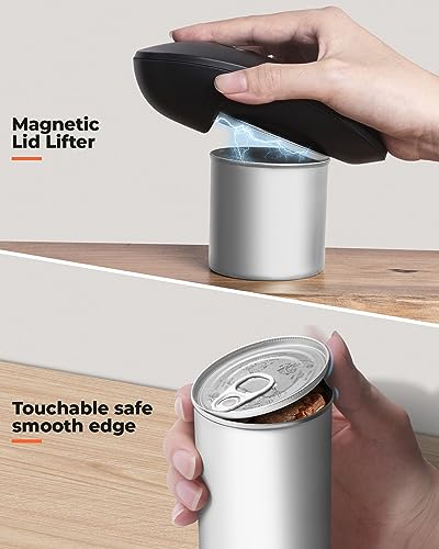 【Smooth Edge & Food Safety】 The hands free can opener cuts along the side of the lid rather than the top leaving a safe smooth edge, without touching the food inside. The underside magnet catch the lid and makes it easy to remove the lid. There is another lid remover at the end of the product to help remove lids from sticky food cans or high-pressure ones.