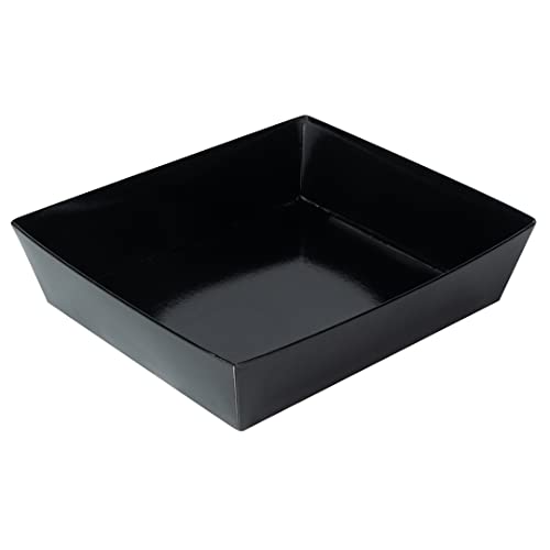 Fill up our Matsuri Vision Black Paper Large Tetra Sushi Containers with your delicious meals. Combine these to go containers with our compatible Matsuri lids (SKU: RWA0465C) to securely seal in snacks. Designed with a PE lining, these paper sushi boxes are greaseproof to keep oils locked in and avoid leaks during transport. Crafted from high-quality paper, these sushi take away containers are strong and sturdy for sustaining the weight of multiple rolls. The stylish black finish of these paper sushi boxes gives your take out presentations an elegant and chic look. To create space in your storage area, these sushi trays are stackable. For simple cleanup after events, these takeaway trays are recyclable. These recyclable take out containers measure 5 inches in length by 4.5 inches wide and 1.5 inches tall. Sold in a 100 count box. Lids are available and sold separately.