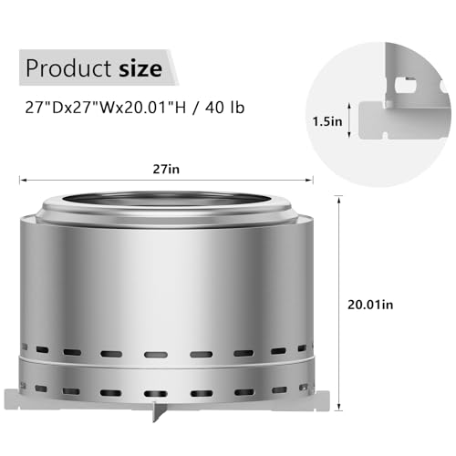 Stainless Steel with Stand: 27″L*27″W*20.01″H. Crafted from high-quality stainless steel, this wood-burning fireplace promise durability and long-lasting performance. The stand provides a stable and secure foundation, enhancing safety while protecting the ground from heat damage.