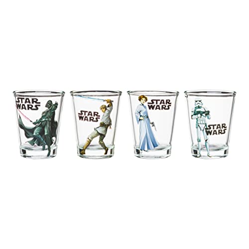 MINI-GLASS SET: Have fun with your friends with this Star Wars 4pc. 1.5oz. mini glass set that features your favorite Star Wars characters