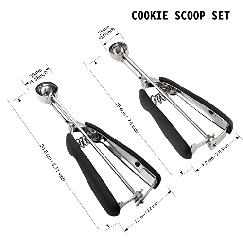 Small Cookie Scoop Set – 2 PCS Include 1 tsp / 2 tsp Cookie Dough Scoops, Cookies Scoops for Baking, Made of 18/8 Stainless Steel, Good Soft Grips, Quick Trigger Release