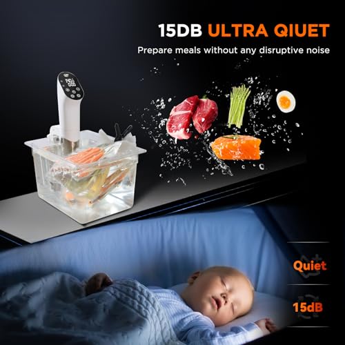 【Ultra-quiet】The sous vide machine features a brushless motor, making the sous-vide machine cook almost silently. It emits only 15 dB of sound, quieter than a whisper, allowing you to prepare meals without any disruptive noise.