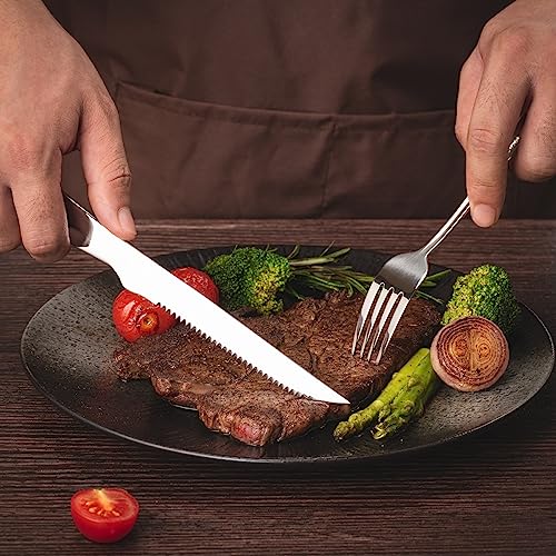 Multipurpose: Serrated knives are not only great steak accessories, but can also be used to cut other meats, lemons, broccoli, etc. This silverware set is perfect for daily meals, parties and camping.