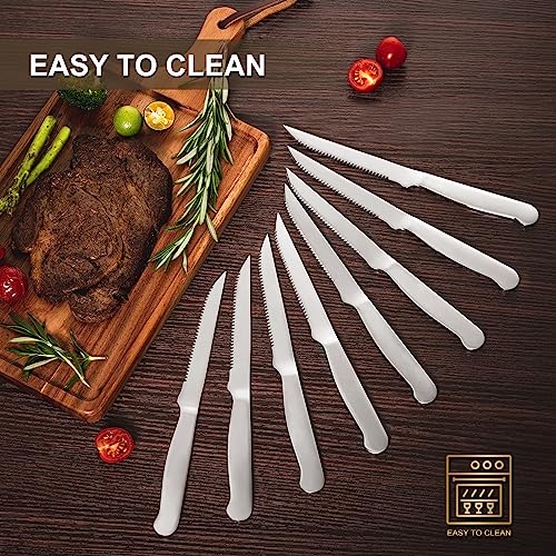Steak Knives Set of 8, Eisinly Sharp Serrated Knife Set with Sturdy Full Stainless Steel Handle for Kitchen Restaurant Party, 9.5 Inches, Silver