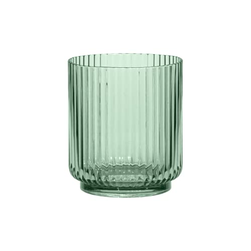 Set of 6 sage green tumblers/double old fashioned premium plastic drinkware in Mesa pattern; each glass measures 3.4″ diameter by 3.9″ tall with a capacity of 15 ounces
