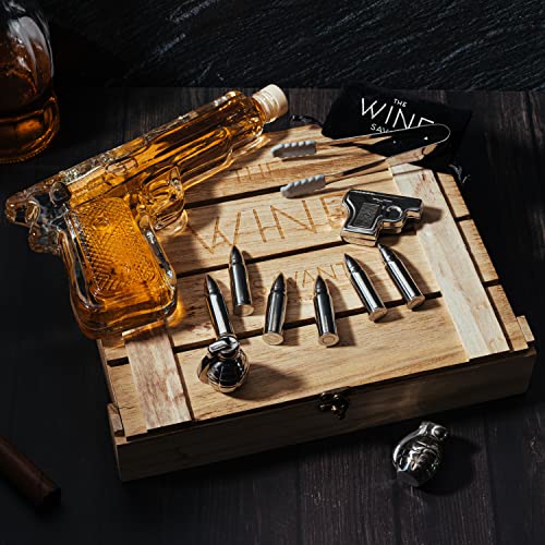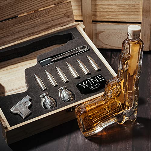 The Wine Savant Pistol Whiskey & Wine Decanter Pistol Whiskey Gun Decanter 6 Bullet Whiskey Chillers – Military Gifts, Veteran Gifts, Law Enforcement Gifts, Home Bar Gifts, Drinking Accessories