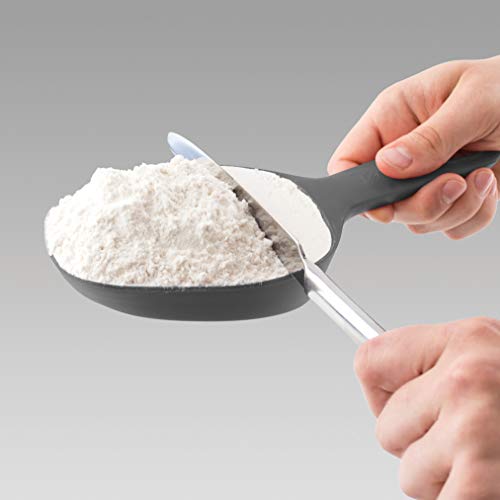 ERGONOMIC DESIGN: Designed for easy scooping, the Scoop & Sift features a shovel-shaped front and thick lip to avoid spills. The comfortable handle makes it easy to go from measuring ingredients to holding the strainer over the mixing bowl.