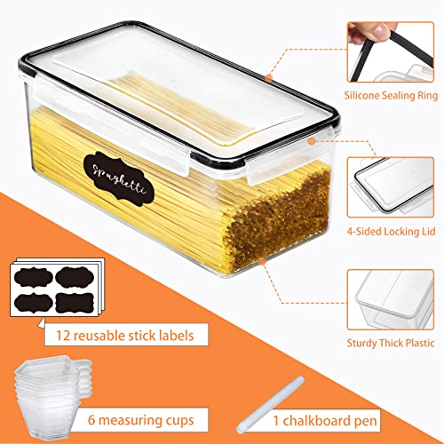 VITEVER [6 Pack] 3.2L Airtight Pasta, Spaghetti Storage Containers Set with 6 Measuring Cups, BPA Free Plastic Food Containers with Lids for Kitchen, Pantry Organization and Storage