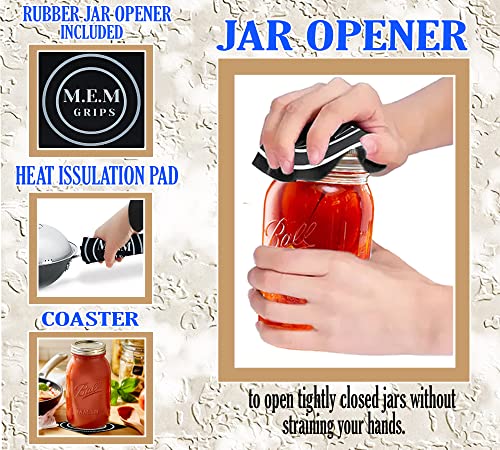 This Pack of 4 – 32 Ounce Ball Wide Mason Jars are ideal for fresh preserving recipes such as salsas, syrups, sauces, fruits, and vegetables. Lids and Bands included with a new and improved Sure Tight Lids that helps keep canned food sealed now for up to 18 months. The Clear Glass from our Ball Wide Mouth Quart 32-Ounces Jar are perfect for Decor and make it easy to see the jelly jar’s contents and determine if they’re spoiled. Freezer Safe. BPA-Free. Made in the USA. (Jar Height with Lid: 6.79 inches”) (Jar Mouth Diameter: 3.50 inches) PACK INCLUDES: 4 – 32 oz Ball Wide Mouth Mason jars. 4 – Wide Mouth Ball Lids. 4 – Wide Mouth Ball Bands + 1 – M.E.M Rubber Jar Opener.