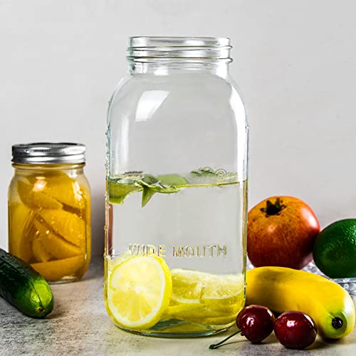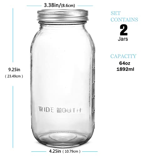 Yniken 64 Ounce Wide Mouth Half Gallon Mason Jars with lid and band- Set of 2