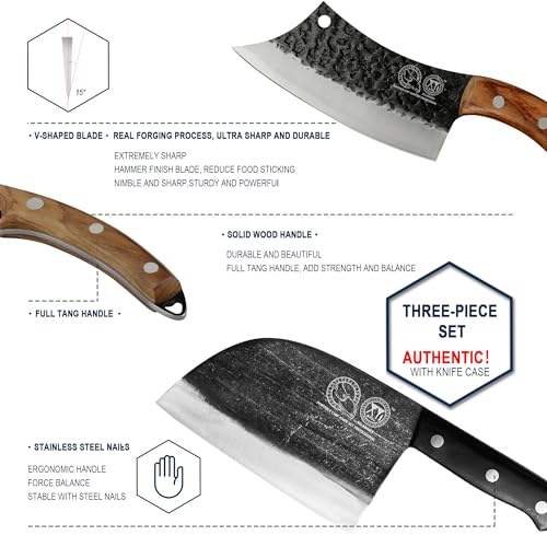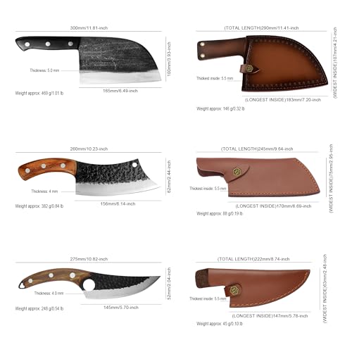 XYJ FULL TANG 6.7 Inch Forging Butcher Knife 6.2 Inch Camping Kitchen Knives 6 Inch Outdoor Boning Knife With Carry Sheath&Chef Knives Bag&Cutlery Gadget Set (Brown)
