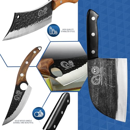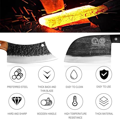 【Multi-purpose&High Quality Cleaver】XYJ knives are forged by high-manganese steel and stainless steel. Designed with a V-shaped fine processing blade and ergonomic full tang handle, they can provide a comfortable grip in your hand and are suited for cutting meat, fish, vegetable, fruits or any other food other than bones.