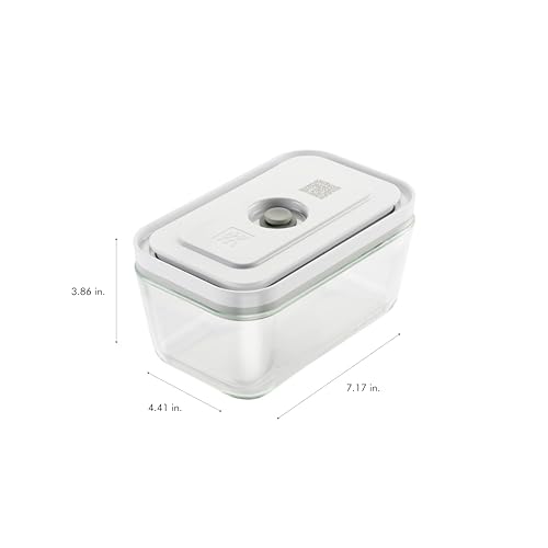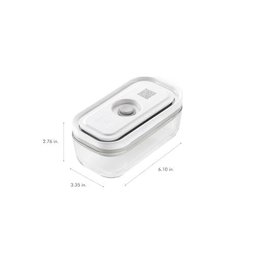 The Fresh & Save vacuum containers are designed to work with the vacuum pump to keep food fresh up to five times longer than non-vacuum storage. They are available in borosilicate glass or BPA-free plastic. Both versions are stackable and freezer, microwave (without vacuum seal), and dishwasher safe. Glass containers are ovenproof (without lid) and double as beautiful serving pieces at the table. Each container style is available in a range of sizes so you can store an entire leftover dinner, a light lunch, or a small to-go snack. With the Fresh & Save system, you can shop once a week and refrigerate or freeze fresh fruit, vegetables, meat, and fish in our vacuum containers and bags and enjoy the benefits of your own fresh market at home. Prepare your meals days in advance and enjoy them as fresh as the day they were cooked. Cook meat sous vide or marinate meat for the grill in just 30 minutes in the vacuum bags and containers. Here’s how it works: Dock the vacuum pump onto the container or bag valve and at the push of a button it extracts the air in mere seconds. It stops automatically once a sufficient vacuum has been obtained, locking in flavor, aromas, and vitamins. Set includes: 1 small, 1 meduim, and 1 large vacuum container. Container made of borosilicate glass and temperature resistant from 0°F to 536°F. Freezer safe, ovenproof (without lid), microwave safe (without vacuum seal), and dishwasher safe. Container lids feature double seal to create a perfect seal. For use with the Fresh & Save vacuum pump. Vacuum lid with innovative double sealing technology. Easy linking of the vacuum container with the ZWILLING Culinary World App via the QR code on the lids for tracking food and shelf life. Free app calculates how long the vacuum sealed food and meals can be kept and the reminder function informs you in good time when the food needs to be consumed. Recipes, explanatory videos and a shopping list round of the services offered by the app.